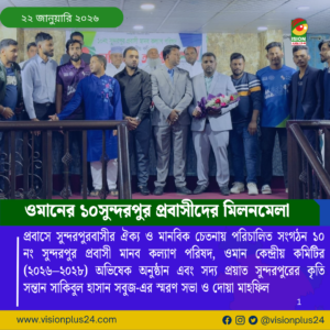 প্রবাসে সুন্দরপুরবাসীর ঐক্য ও মানবিক চেতনায় পরিচালিত সংগঠন ১০ নং সুন্দরপুর প্রবাসী মানব কল্যাণ পরিষদ, ওমান কেন্দ্রীয় কমিটির (২০২৬–২০২৮) অভিষেক অনুষ্ঠান এবং সদ্য প্রয়াত সুন্দরপুরের কৃতি সন্তান সাকিবুল হাসান সবুজ-এর স্মরণ সভা ও দোয়া মাহফিল গত ২২ জানুয়ারি ২০২৬, মাস্কাটস্থ আলেকজান্দ্রিয়া রেস্টুরেন্টে অনুষ্ঠিত হয়েছে।